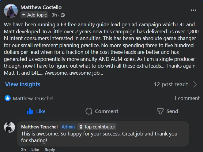 This system has been helping real agents and advisors generate real leads, interested in life insurance, annuities, and retirement planning, for years using time-tested, proven marketing principles.
